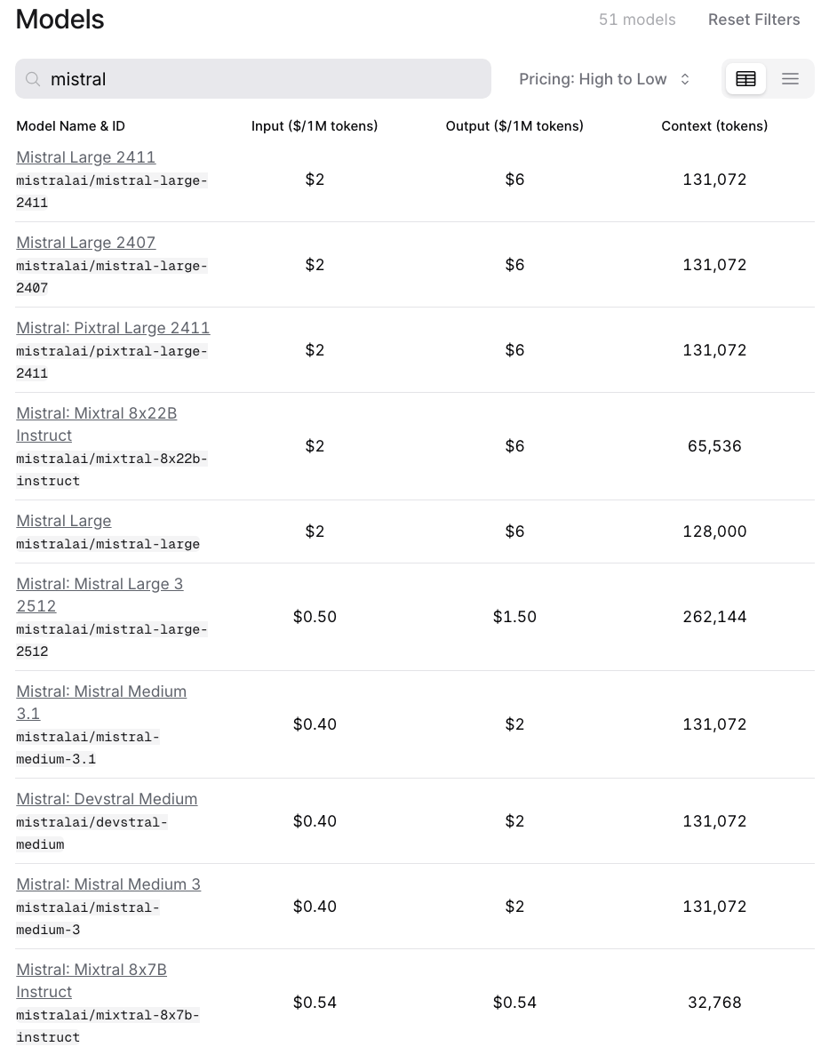 Mistral offers the Mistral 3 family spanning Mistral Large 3 (flagship), Medium 3.1 (balanced), Small 3.2 (efficient), plus specialized Ministral variants at 14B, 8B, and 3B parameters. Mistral Large 3 represents their "state-of-the-art, open-weight, general-purpose multimodal model" for high-complexity tasks that require top-level reasoning. Medium 3.1 (released August 2025) provides frontier-class multimodal capabilities at $0.40 input/$2.00 output per million tokens—up to 8× cheaper than competitors while maintaining comparable performance. The Ministral 3 lineup includes Base (pre-trained foundation), Instruct (chat-optimized), and Reasoning (analytical) variants, designed to run on single GPUs and minimize operational costs. Specialized models include Codestral for programming, Voxtral for audio transcription, Magistral for reasoning tasks, and Devstral for software engineering, providing tailored solutions beyond generic chat assistants.
